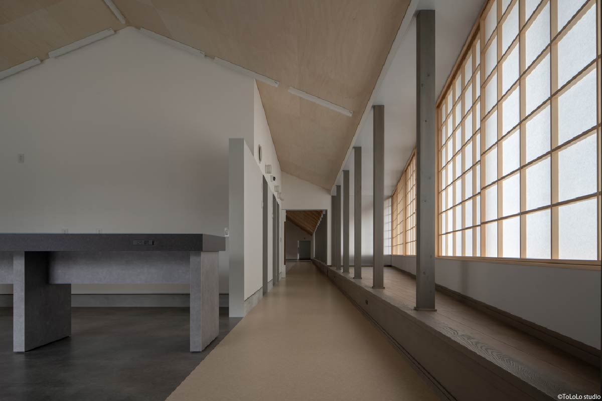 木造トラスによる6m×40mの無柱空間のあるオフィス